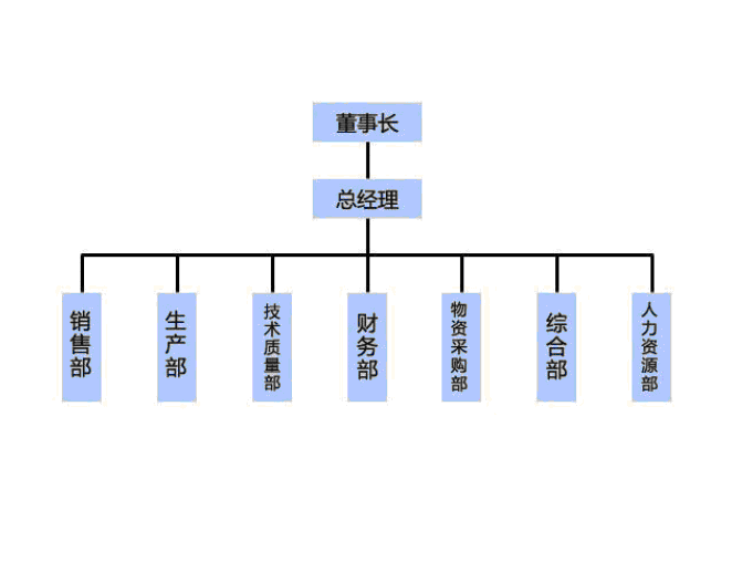 董事長主要是權權負責公司全部事宜,總經理主要是負責處理公司各種事情,銷售部主要是負責拓展業(yè)務,技術質量部主要是負責維修技術,財務部主要是負責財務事宜,物質采購部主要是負責采購,綜合部主要是負責公司的后勤事宜,人力資源部主要是負責人員的招聘。 |